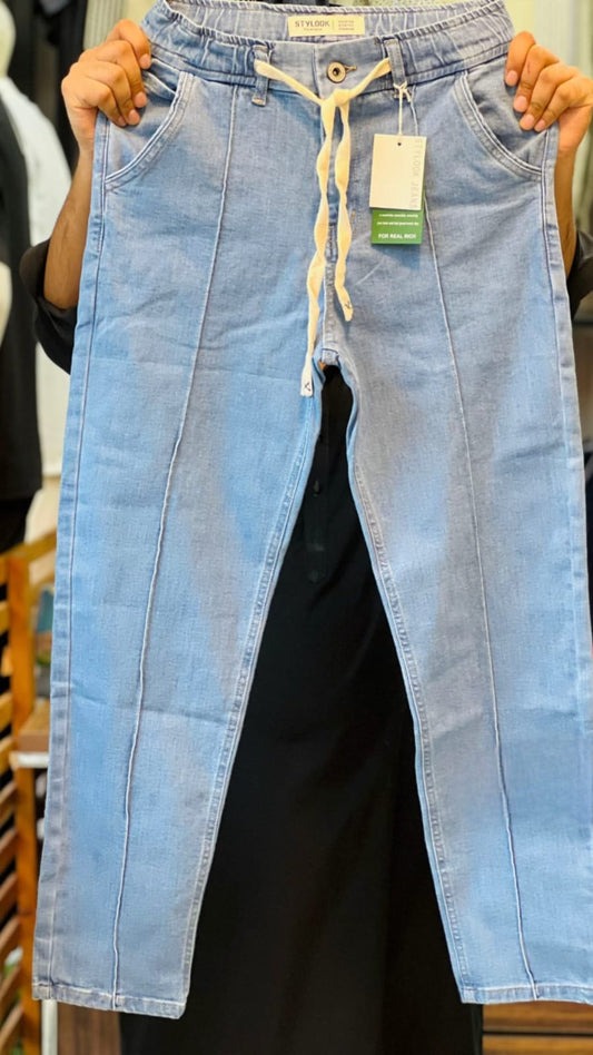 Men’s Blue Jogger Pants with Drawstring Available in Light and Dark Blue